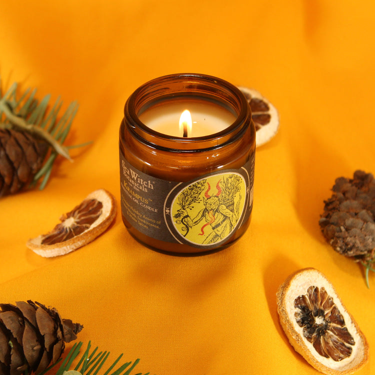 Our sought-after seasonal scent features indulgent, nostalgic aromatics that channel warm holiday spices and whispered secrets of the deepest winter woods. An homage to the Yuletide demon of justice, 'Krampus' boasts a rich and complex essential oil blend of cinnamon, clove, fir needle, frankincense, orange, patchouli, and peppermint.