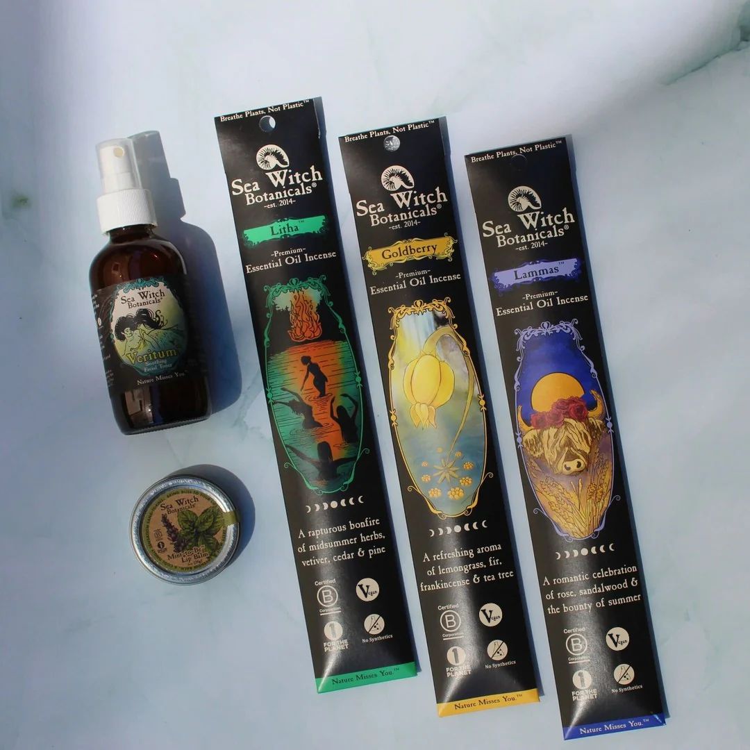 From the Mystic Realms collection, our special seasonal bundle features Goldberry incense, which captures the spirit of the river goddess from Tolkien lore in each fresh and citrusy stick. This summery scent is flanked by our two premium summer-specific seasonals from the Wheel of the Year collection: Litha (evoking summer bonfires, evergreen forests, and the flickering of fireflies), and Lammas (our founder's personal favorite seasonal scent, rich with an ultra-luxurious blend spotlighting sandalwood and rose—and now in new packaging!).