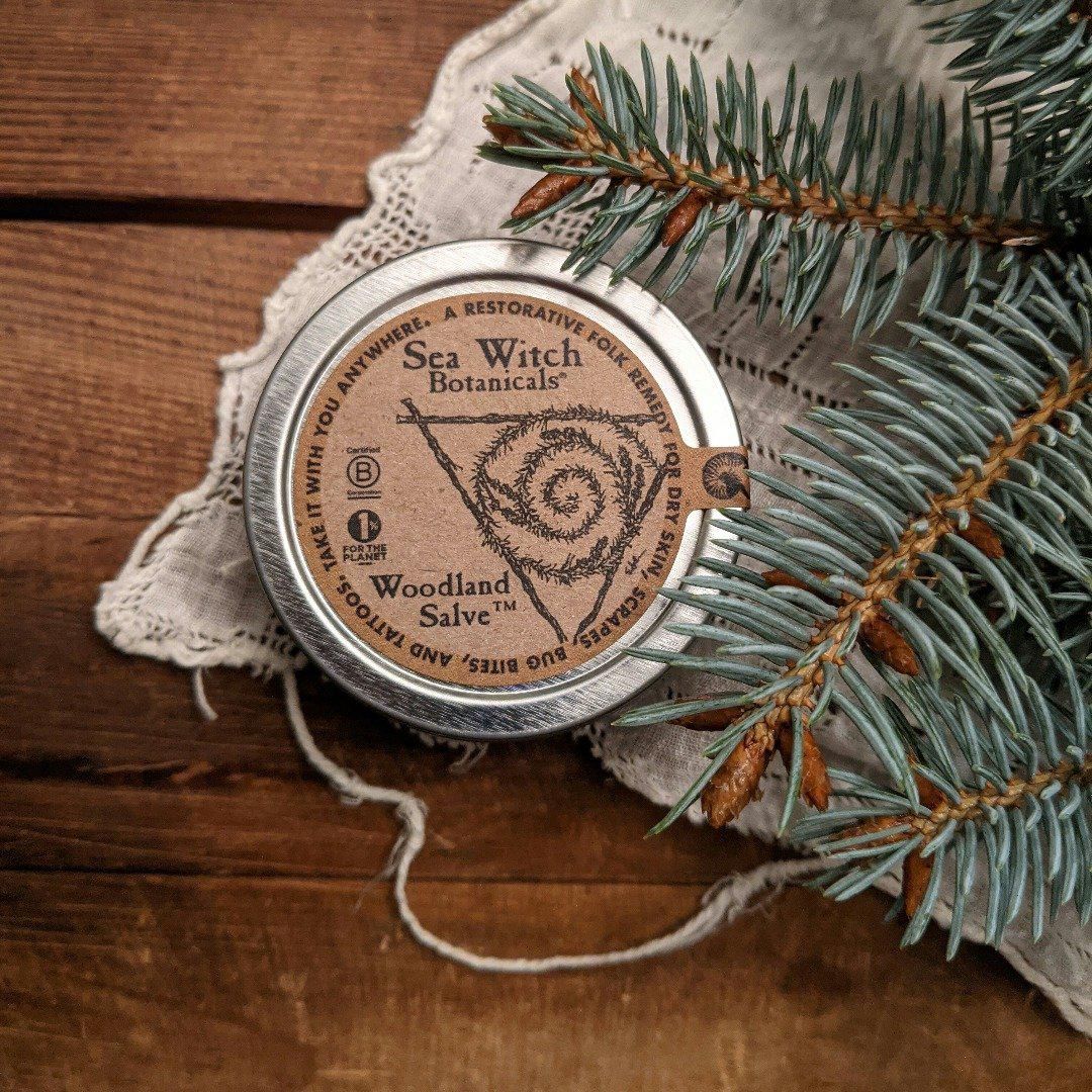 Sea Witch Botanicals' Woodland Salve™ is completely free of synthetic fragrances, petroleum, phthalates, and parabens! I take great care to ensure all ingredients are fresh, pure and ethically harvested. Due to the delicate nature of my plant-based products, I recommend using them within 1 year after delivery, as the plant matter in your product will start to decrease in benefits.