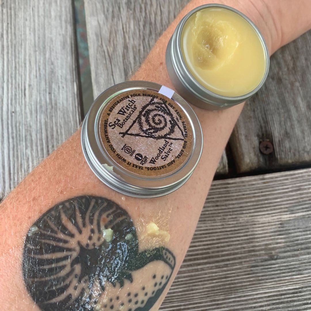 When using Woodland Salve™ as a tattoo balm, it is important to remember not to use it on an open wound. Wait until the tattoo has healed and apply Woodland Salve to minimize scarring and promote beautiful colors.