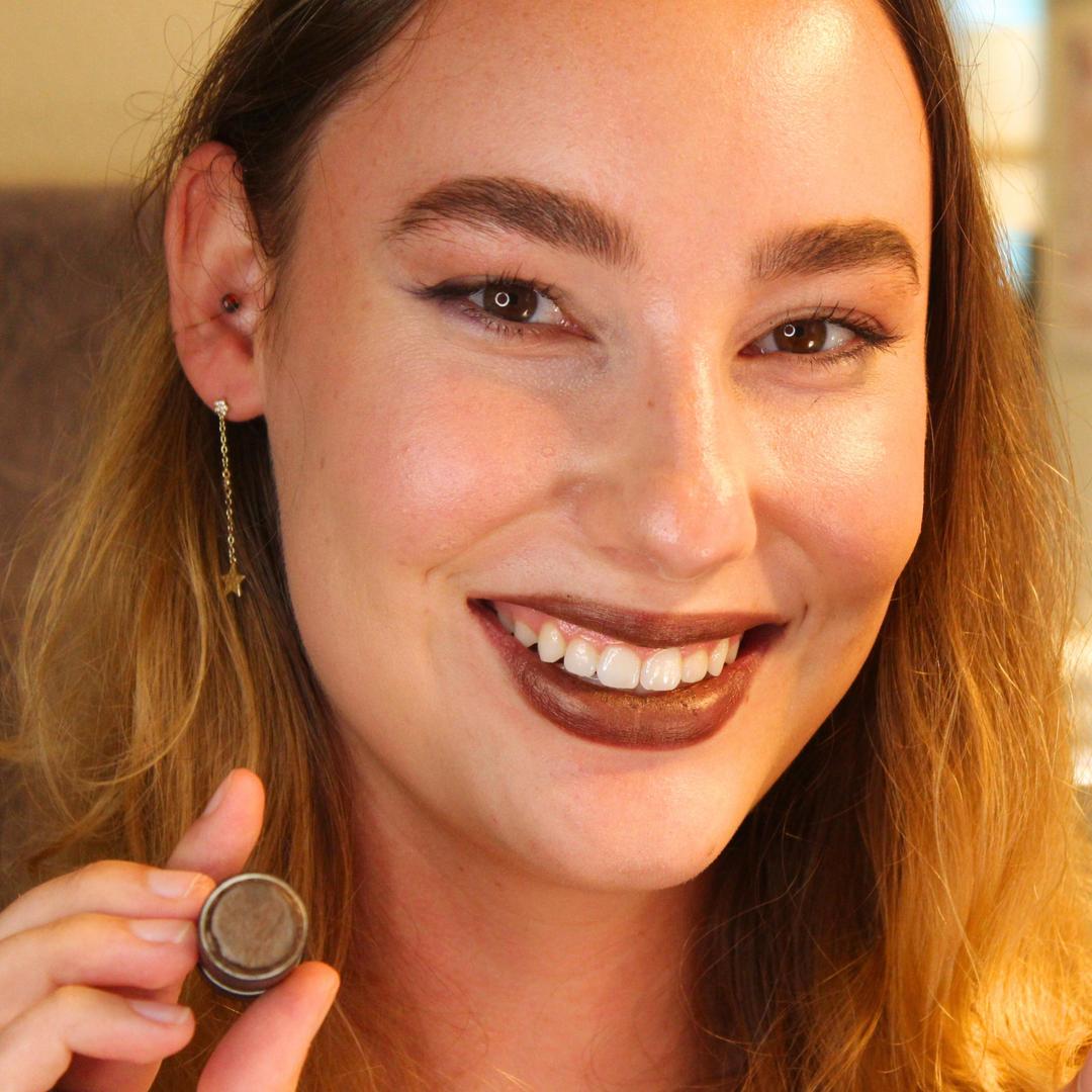 Enhance your natural radiance with our line of 100% natural mineral makeup, now available in easy-to-apply tubes! Use to add a bewitching pop of color to lips, cheeks, and eyelids. Cappuccino is a shimmering lip and cheek tint with a deep espresso hue.