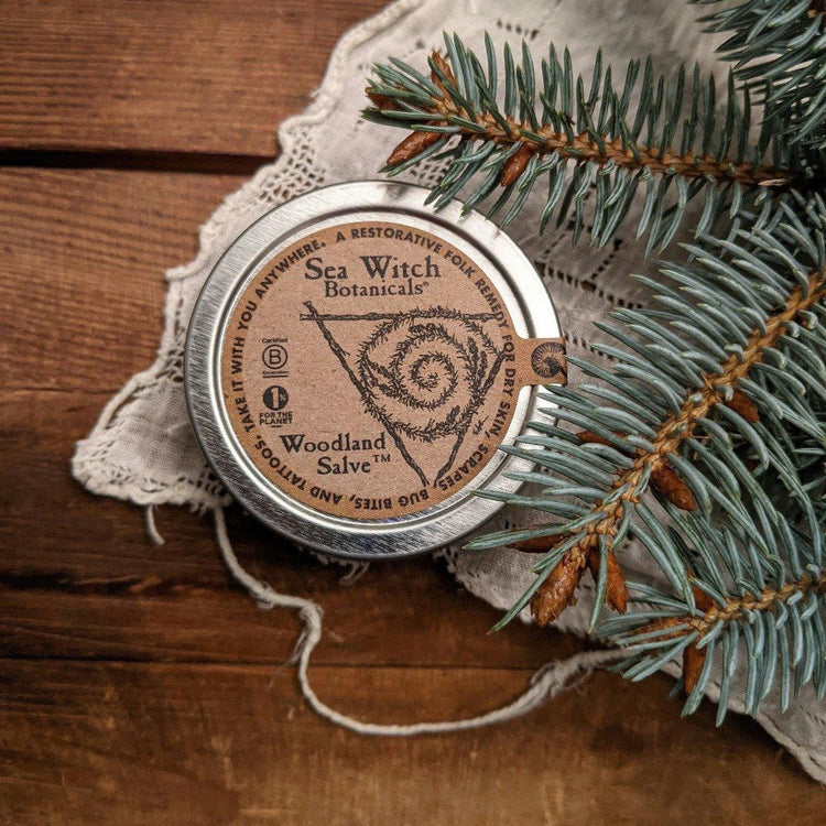 Sea Witch Botanicals' Woodland Salve™ is completely free of synthetic fragrances, petroleum, phthalates, and parabens! I take great care to ensure all ingredients are fresh, pure and ethically harvested. Due to the delicate nature of my plant-based products, I recommend using them within 1 year after delivery, as the plant matter in your product will start to decrease in benefits.