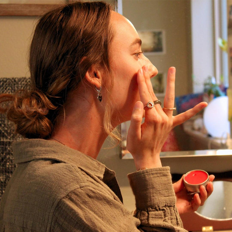 Ingredients: Organic Fair Trade Cocoa butter, Avocado oil, Candelilla Wax, Mica and/or Oxide
